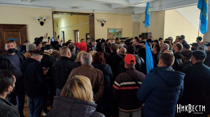 Учасники протесту проти карантинних обмежень прорвались до міської ради Миколаєва.