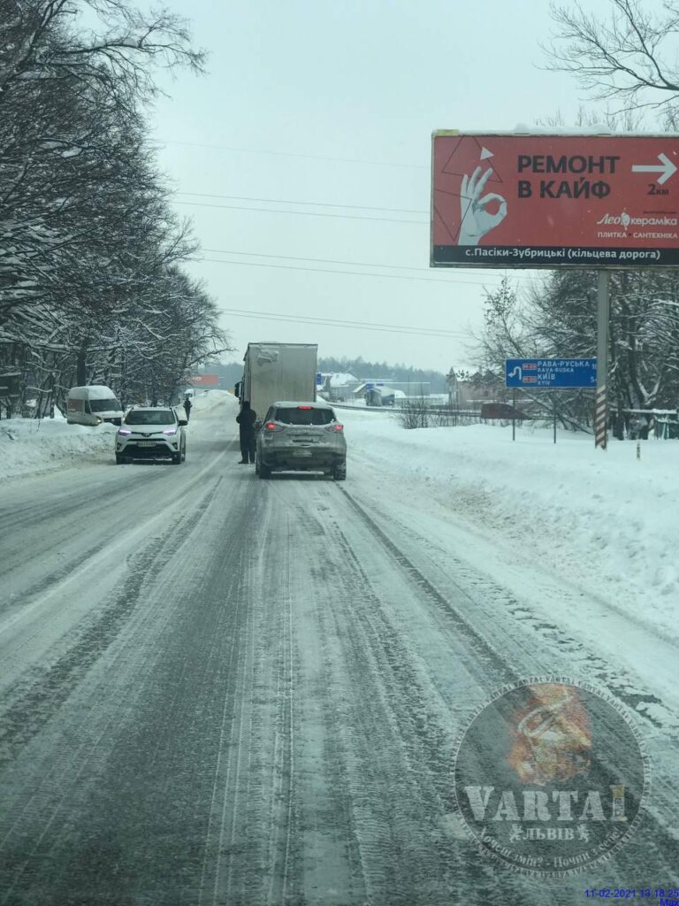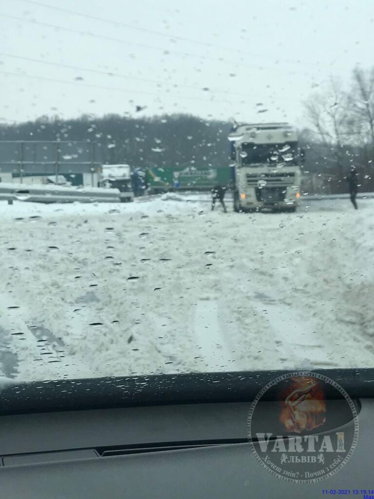 Позначки: вантажівка, комунальники проспали сніг, Пасіки-Зубрицькі, ускладнений рух