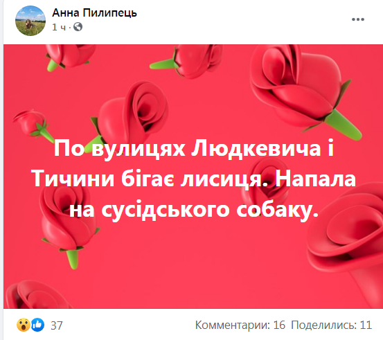 В одному із повідомлень зазначається, що лисиця скоїла напад на собаку.
