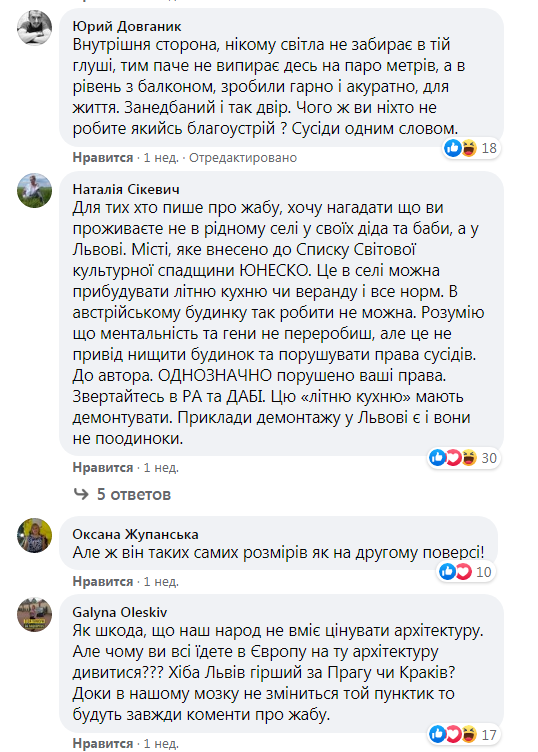 «На зауваження сусідів реагують агресивно і обіцяють продовжити забудовувати прибудинкову територію опираючись на «зв‘язки», завдяки яким їм не потрібен на це дозвіл. Вони не приховують факт підкупу екоінспекції»,- зазначається у тексті звернення на «Гарячу лінію міста Львова» Viktory Violet.