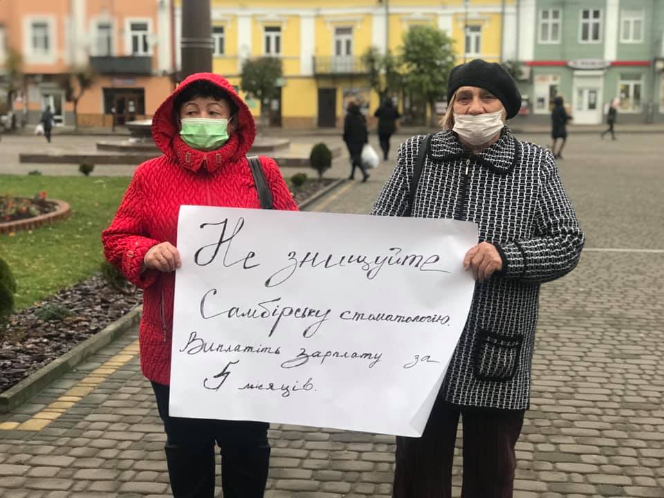 Як зазначається, люди тримали плакати із написами: «Не знищуйте самбірську стоматологію! Виплатіть зарплату за 5 місяців!», «Вимагаємо негайної виплати зарплати».
