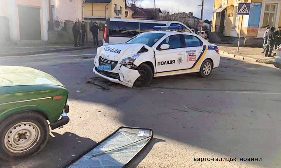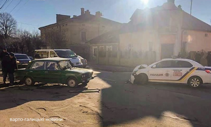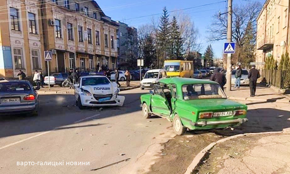 У Самборі не розминулись автівка поліції та Жигулі. Машина правоохоронців добряче погнула капот, Жигулі залишилось без лобового скла.