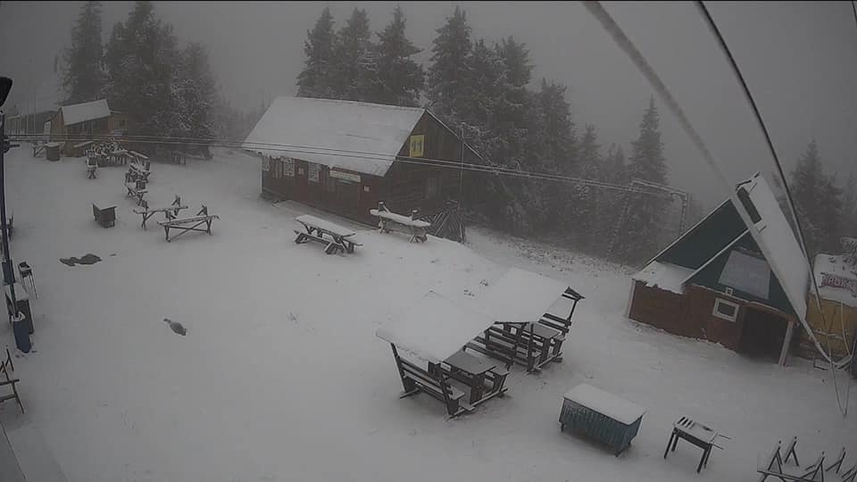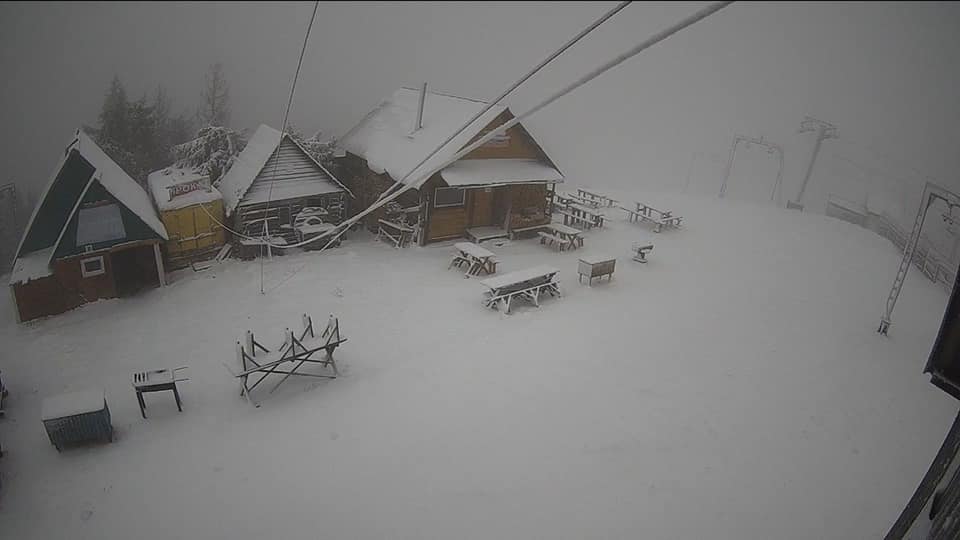 На гірськолижному курорті у селищі Славське на Львівщині, випав сніг.