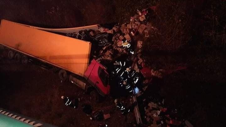 За попередніми даними, у вантажівки лопнуло переднє колесо. В результаті водій не впорався з кермуванням і вантажівка впала з великої висоти.