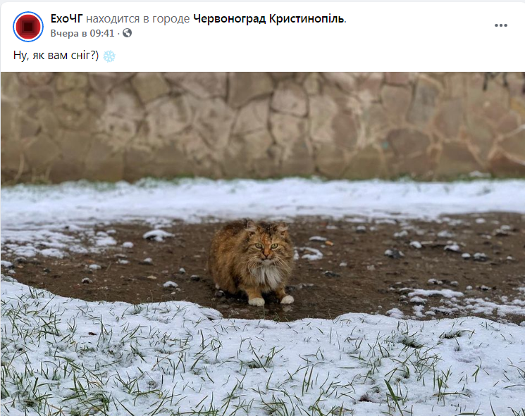 “Ну,як вам сніг?”, – зазначається у коментарі до фото на сторінці спільноти “Ехо ЧГ” у ФБ.