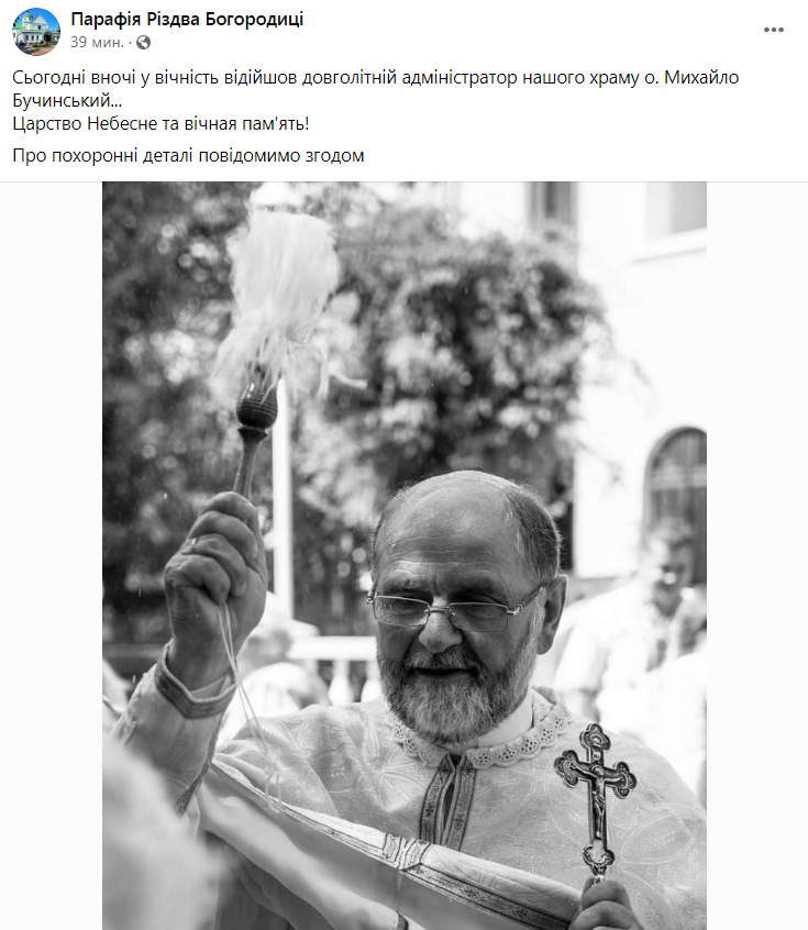 Сьогодні вночі у вічність відійшов довголітній адміністратор нашого храму о. Михайло Бучинський…
