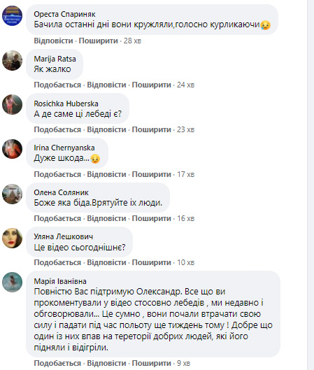 «Якщо лебедів підгодовувати, то тоді вони залишаться зимувати на цьому місці. І з настанням морозів у них виникнуть проблеми, бо птахи почнуть підмерзати на льоді. В іншому випадку вони відлетять на тепліші водойми, де їм легше перезимувати.