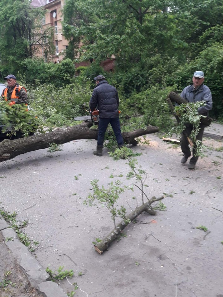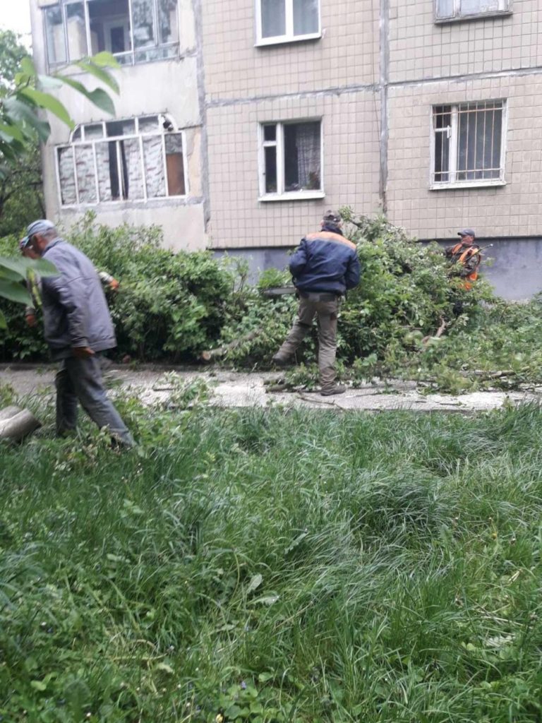 Комунальні служби міста проводять розкрижування повалених дерев. Також комунальники обстежують територію міста щодо можливих інших наслідків сильного вітру.