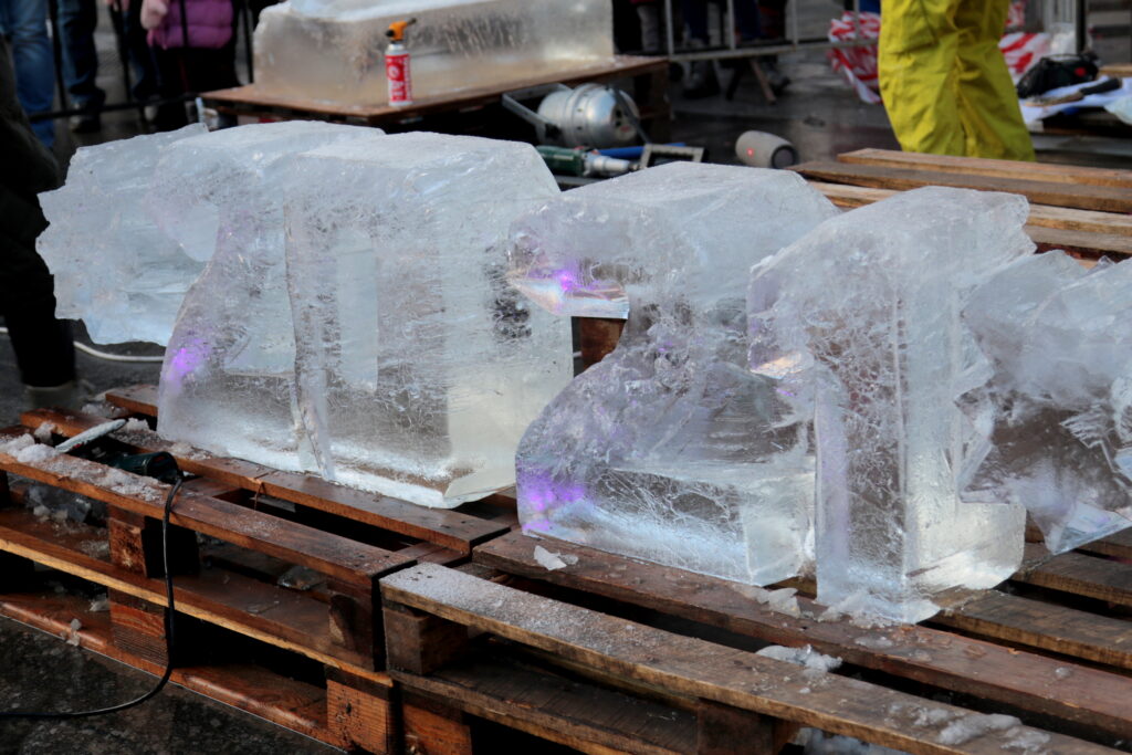 Скульптори витворили з глиб льоду серце, бика, лева, янгола та символічну дату року, що настав.