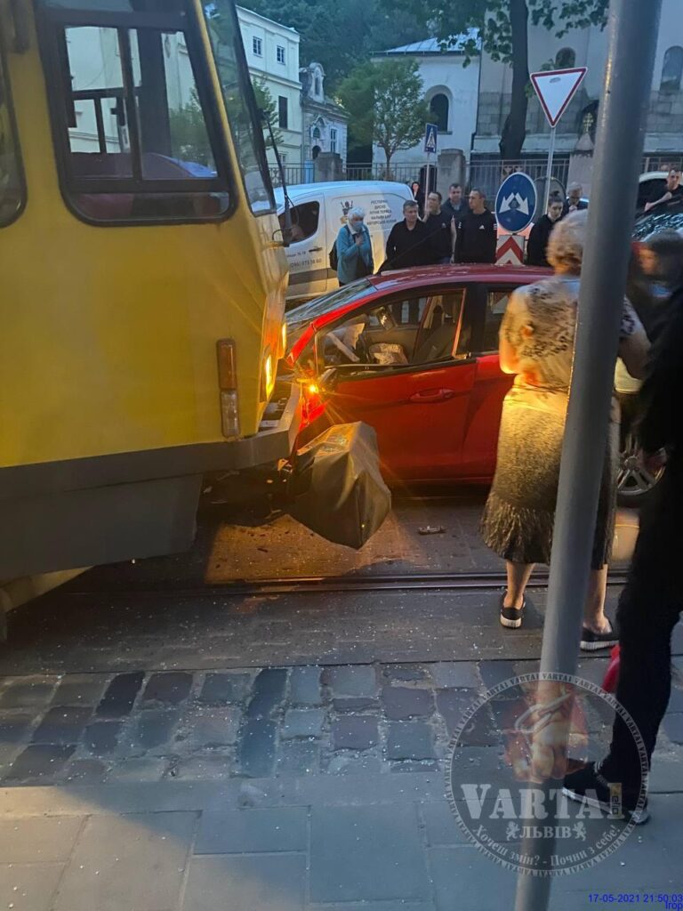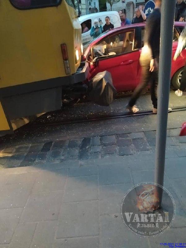 - У центрі Львова два трамваї розчавили автомобіль, фото Варта-1