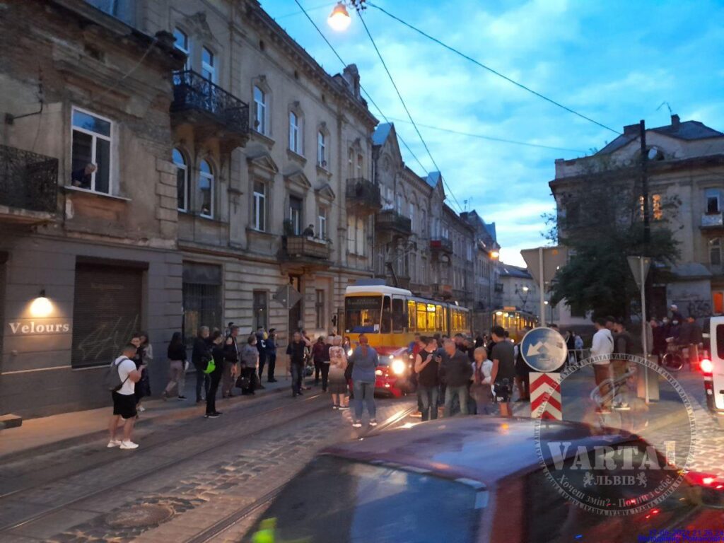 У Львові сьогодні на вулиці Богдана Хмельницького два трамваї не розминулись із автомобілем.