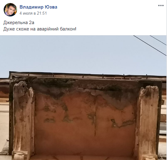 Як пише “Четверта студія”, про аварійний балкон будинку на вулиці Джерельній, повідомив на “Гарячу лінію міста Львова” у ФБ Владимир Юзва.