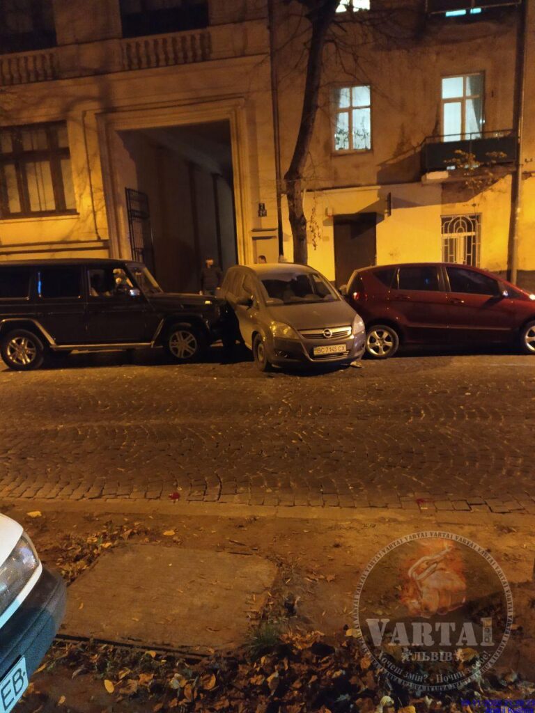 Водій позашляховика Mercedes-Benz в’їхав в автомобіль BMW, опісля вдарив припаркований автомобіль Opel, який за інерцією вдарив припаркований автомобіль Mercedes.