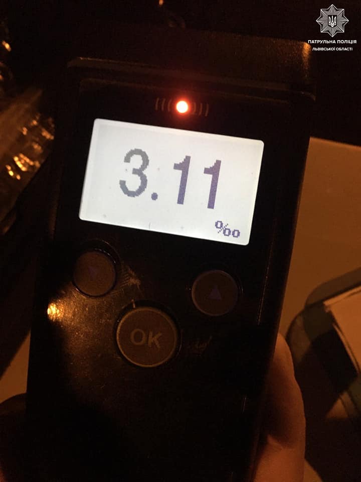 Перевірка на пристрої Drager показала – 3,11 проміле.