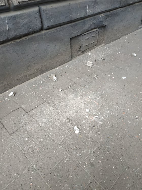 Як повідомляється, на вулиці Дорошенка, 42, тепер небезпечно ходити під будинком.