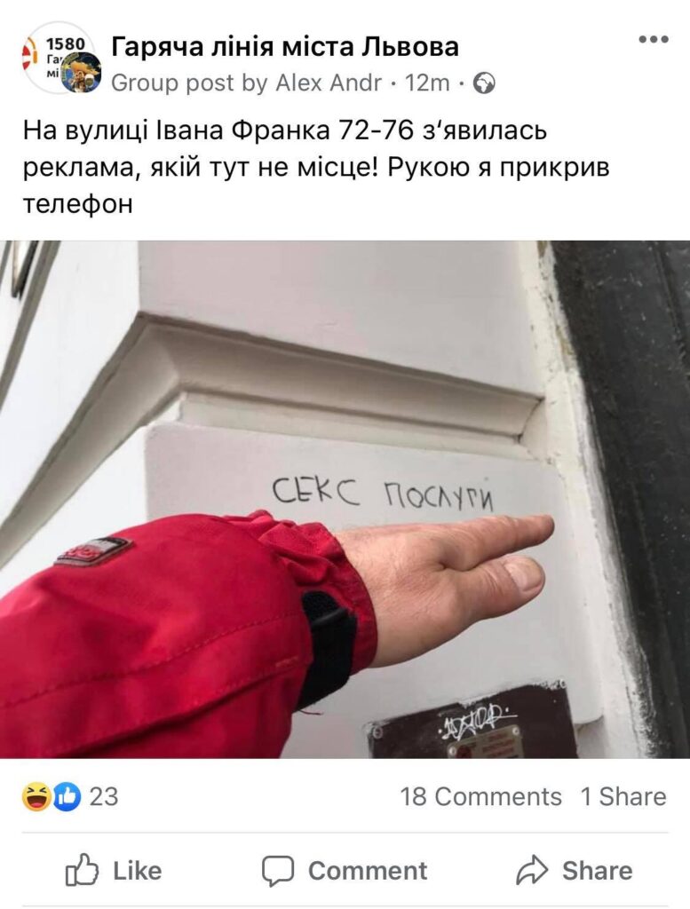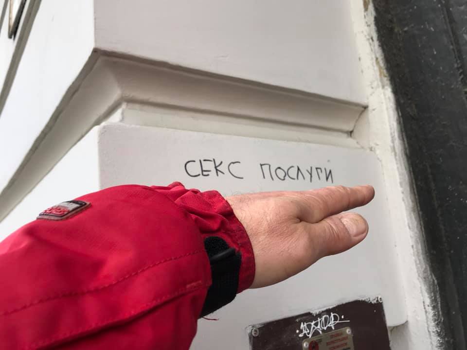 У Львові на фасаді будинку вулиці Івана Франка, 72-76, з‘явилась реклама із надписом “Секс послуги” та номером телефону.