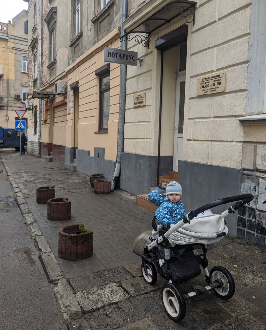 Позначки: дитячий візочок, конструкція, нотаріальна кантора, нотаріус, пішохід, тротуар
