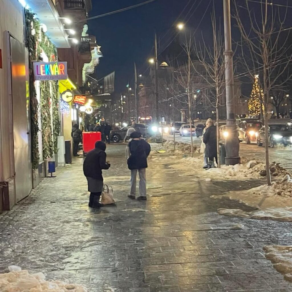 У центрі Львова жінка продає чищені горіхи