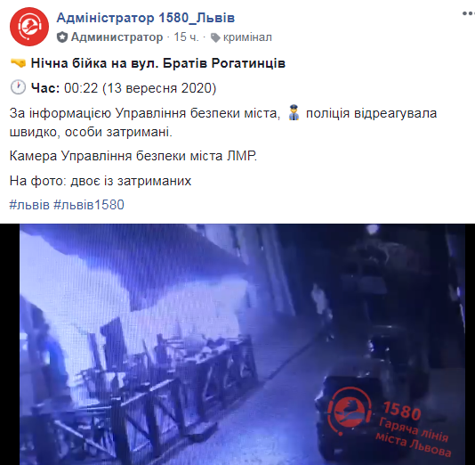 У Львові сьогодні, 13 вересня, близько 00:20 год. на вул. Братів Рогатинців сталася бійка.