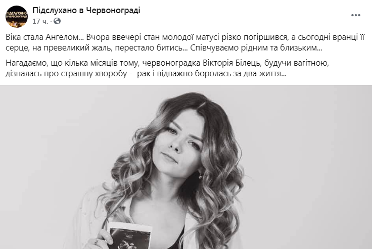 Як пише «Четверта студія» з посиланням на «Львівській новини», про це повідомили у спільноті “Допомога Вікторії Білець”.