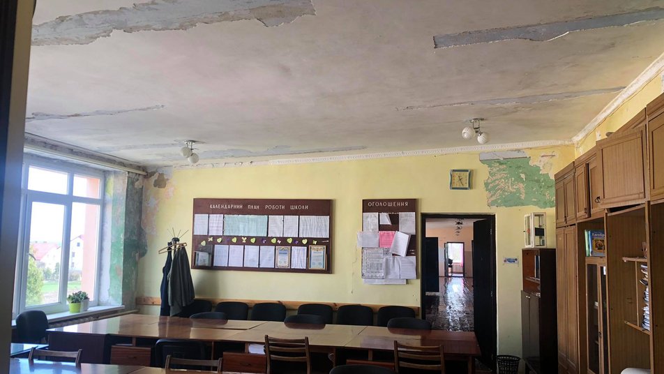“Почало текти на другий поверх і навіть на деякі класи першого поверху. Найбільші проблеми виникли перед Новим роком, тоді падали сильні дощі і знову замокло”, — каже директор школи у Прилбичах Михайло Кирпа.