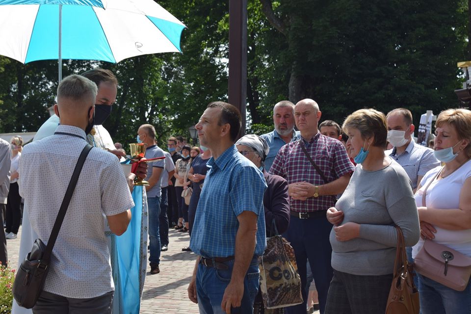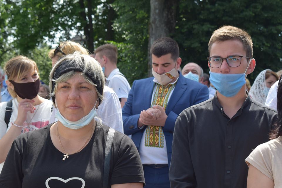 Під час прощі миряни без засобів індивідуального захисту та не дотримуються дистанції.