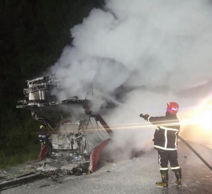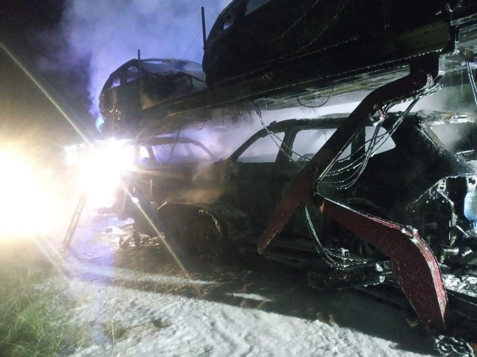 Пожежа виникла в автомобілі з лафетою, на якій знаходилось 4 автомобілі, а саме: «Volkswagen Touran» – 2 автомобілі, «Mazda» та «Dodge».