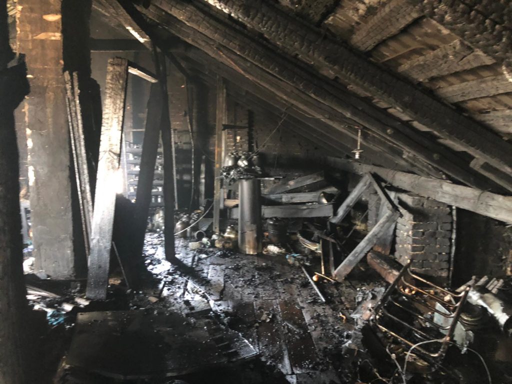 Вогнем знищено дах на площі 120 кв.м., речі домашнього вжитку на площі 120 кв.м., пошкоджено дерев’яне перекриття на площі 120 кв.м.