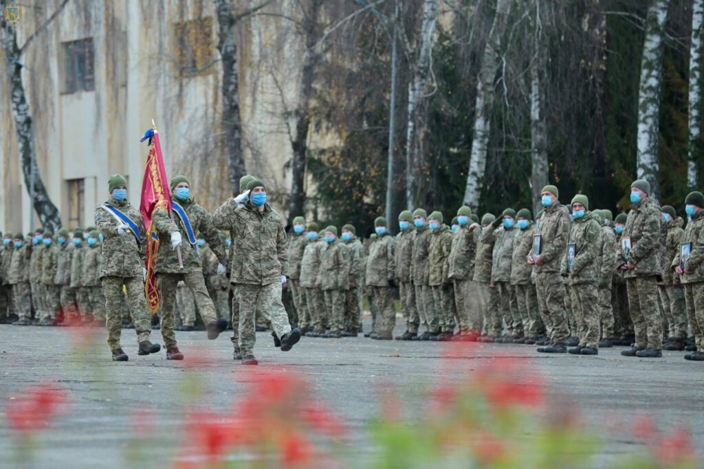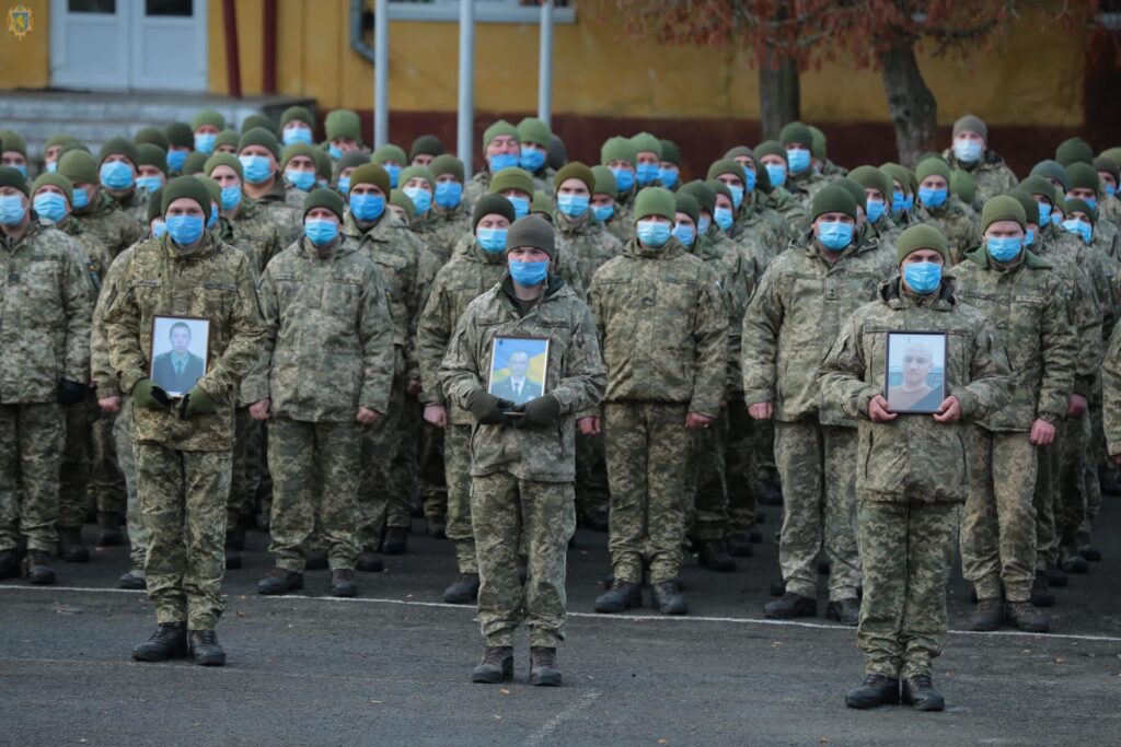 Армійці тримали портрети побратимів, які загинули на Сході. Пам’ять полеглих ушанували хвилиною мовчання.