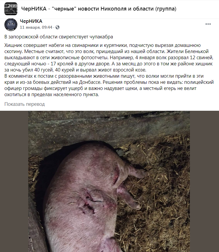 Позначки: Біленьке, вовки, кролі, поліція, свині, село, тварини, чупакабра