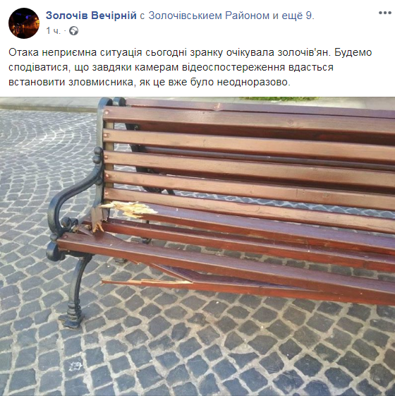 Позначки: відеоспостереження, вандал, Золочів, лавка