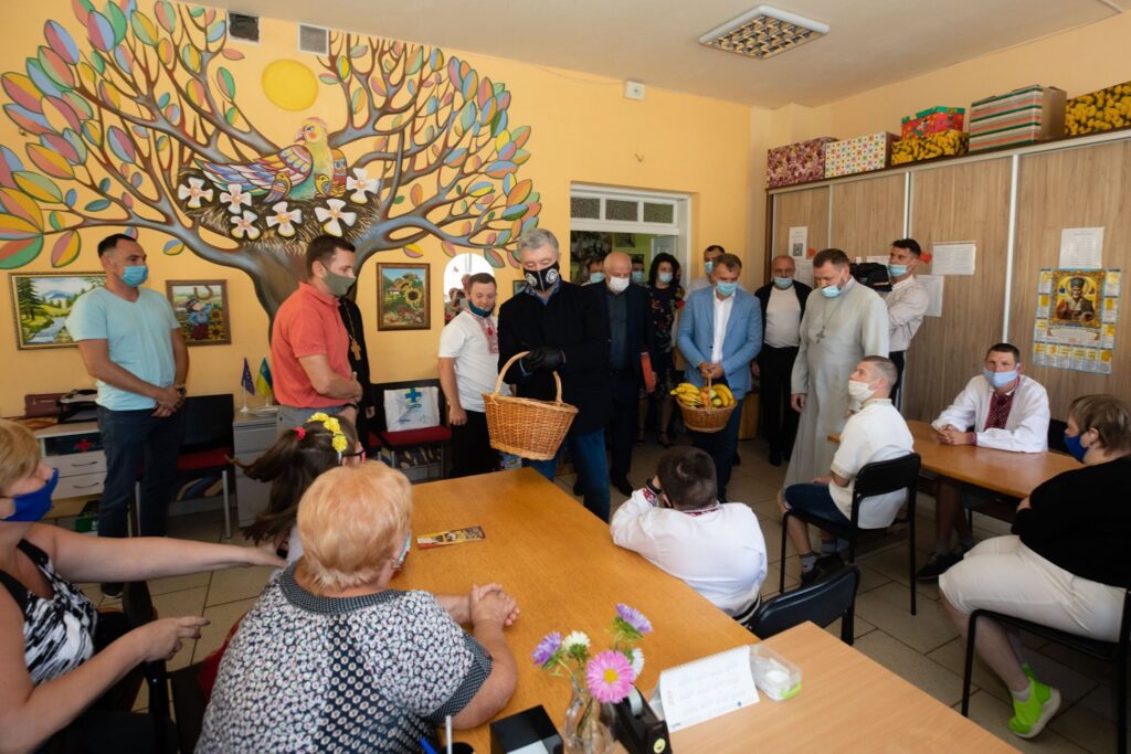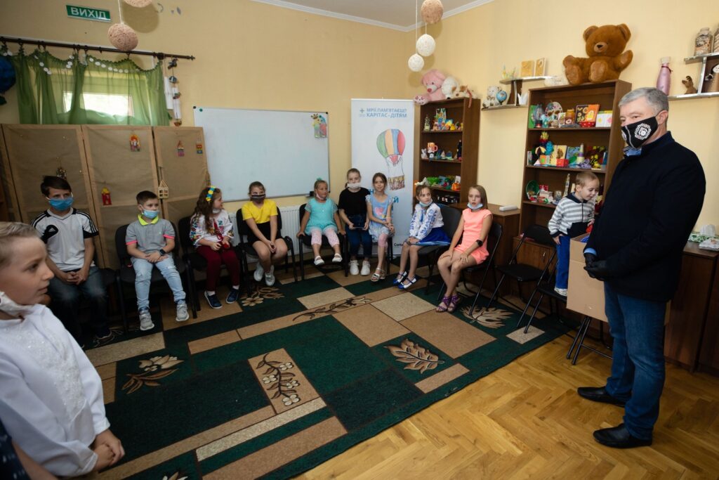 Лідер партії “Європейська Солідарність” Петро Порошенко у Дрогобичі поспілкувався із дітками та їхніми вихователями у благодійному фонді “Карітас” Дрогобицько-Самбірської єпархії УГКЦ.