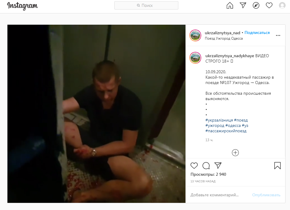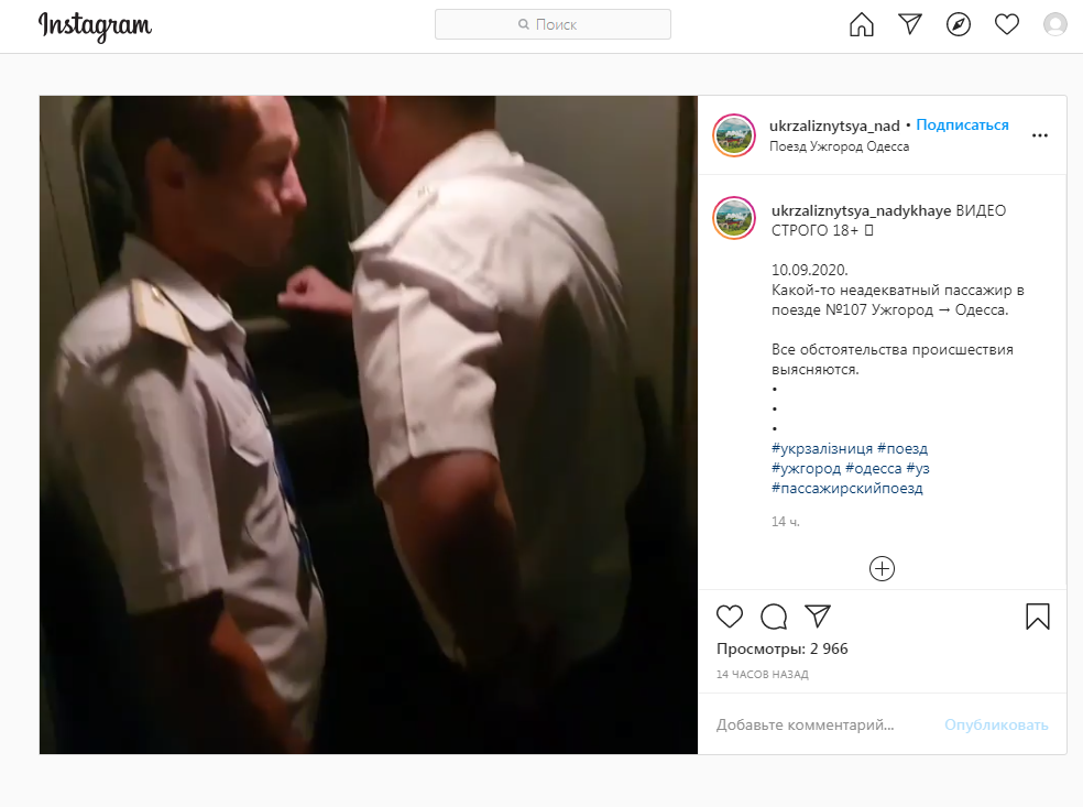 Як пише “Четверта студія”, Укрзалізниця повідомляє на своїй сторінці у ФБ, що у вказаному поїзді що вирушив за маршрутом 10 вересня, особа, що знаходилась у ньому, попередньо у стані алкогольного сп’яніння, спричинила конфлікт з іншими особами, після чого була передана медичним працівникам по станції Воловець.