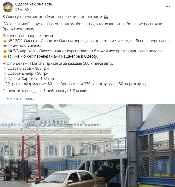 Як пише «Четверта студія», «Одеса, як вона є», повідомляє, що “Укрзалізниця” запускає вагони-автомобілевози, що дозволить на великі відстані брати свою тачку.