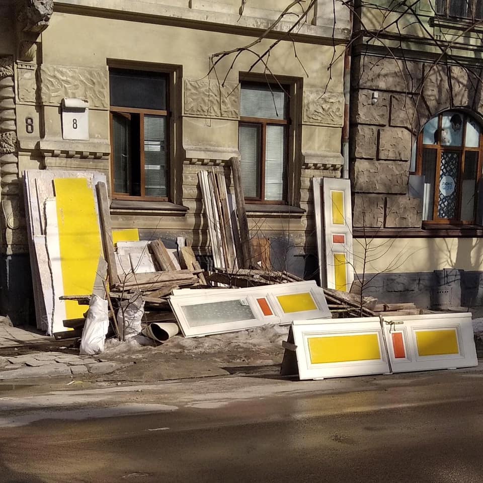 Знову скандал у вузьких колах. В “елітному” “інтелігентському” районі Львова біля смітника наскладано старих австрійських дверей.