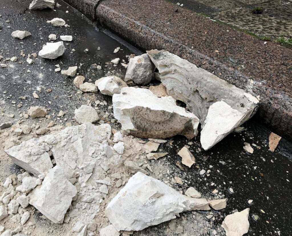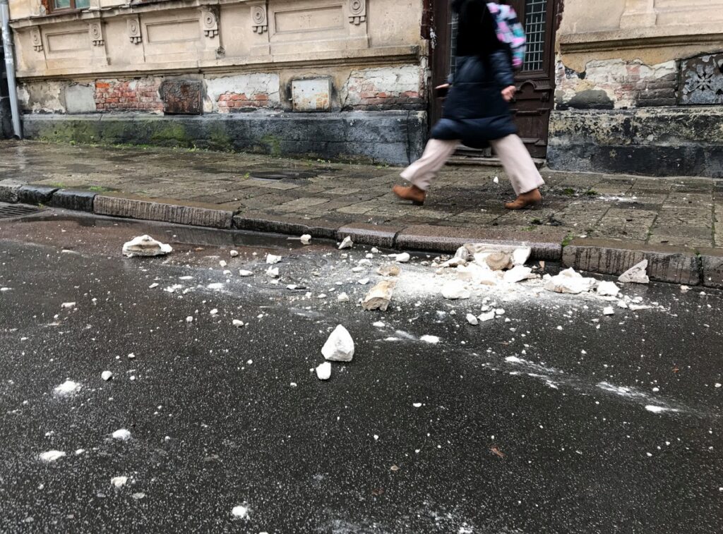 У багатолюдному історичному центрі міста фрагменти балконів падають на тротуари
