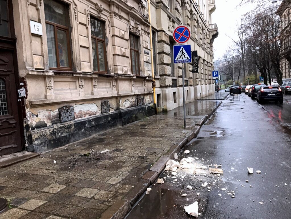 У центральній частині міста Львова обвалився фрагмент балкону, який впав на тротуар.