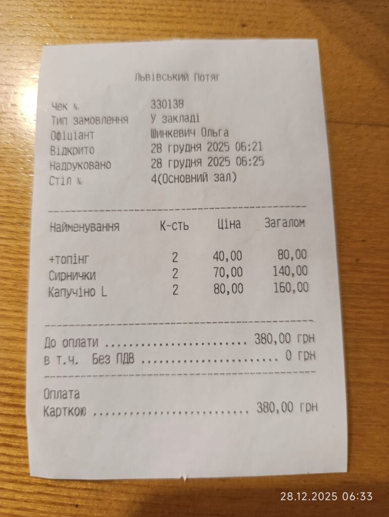 П’ять зупинок було, все якісь великі заклади. Не фопи точно. Нормальний чек – один, на заправці за Рівним. Все решта – або ерзаци, або нічого. Де та розпіарена онолітєга? Тай таке.