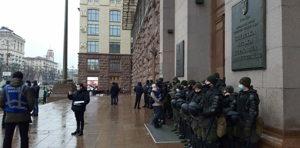У Києві біля Київської міської державної адміністрації представники Save FOP влаштували акцію протесту проти введення карантину в столиці.