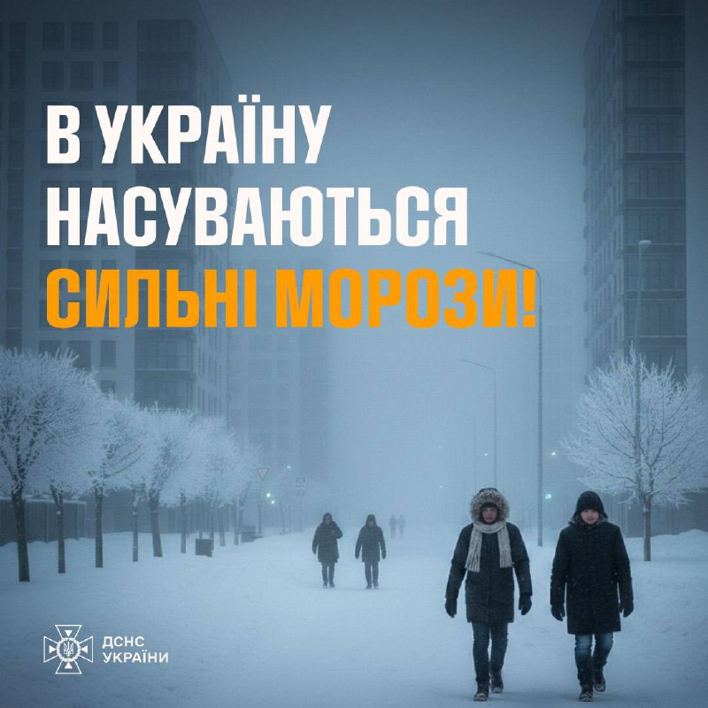 1–3 лютого температура різко впаде: вночі до –20…–27°, місцями — до –30° (червоний рівень небезпеки).