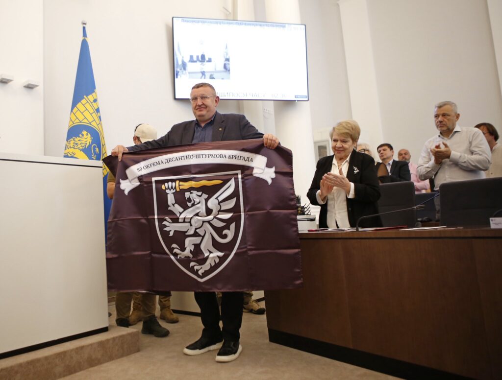 Представники 80-ї окремої десантно-штурмової Галицької бригади ДШВ ЗСУ під час засідання сесії Львівської міської ради подякували громаді міста та депутатам за значну підтримку та постійну допомогу.
