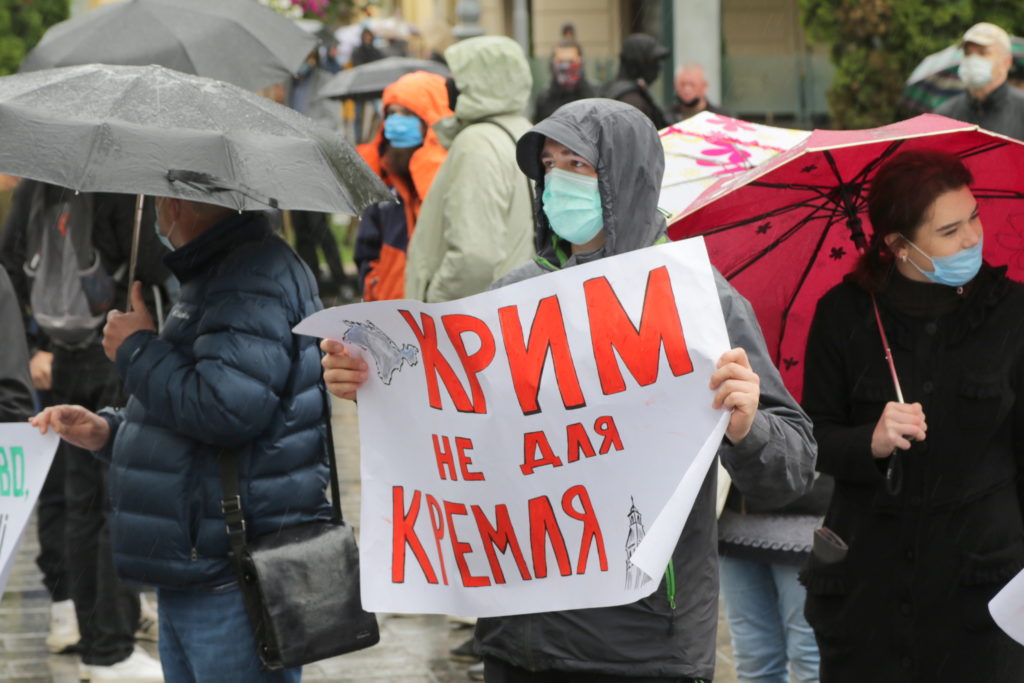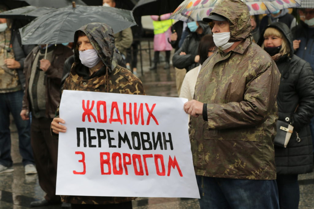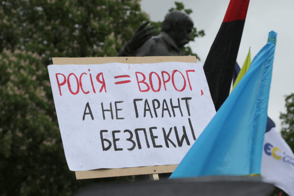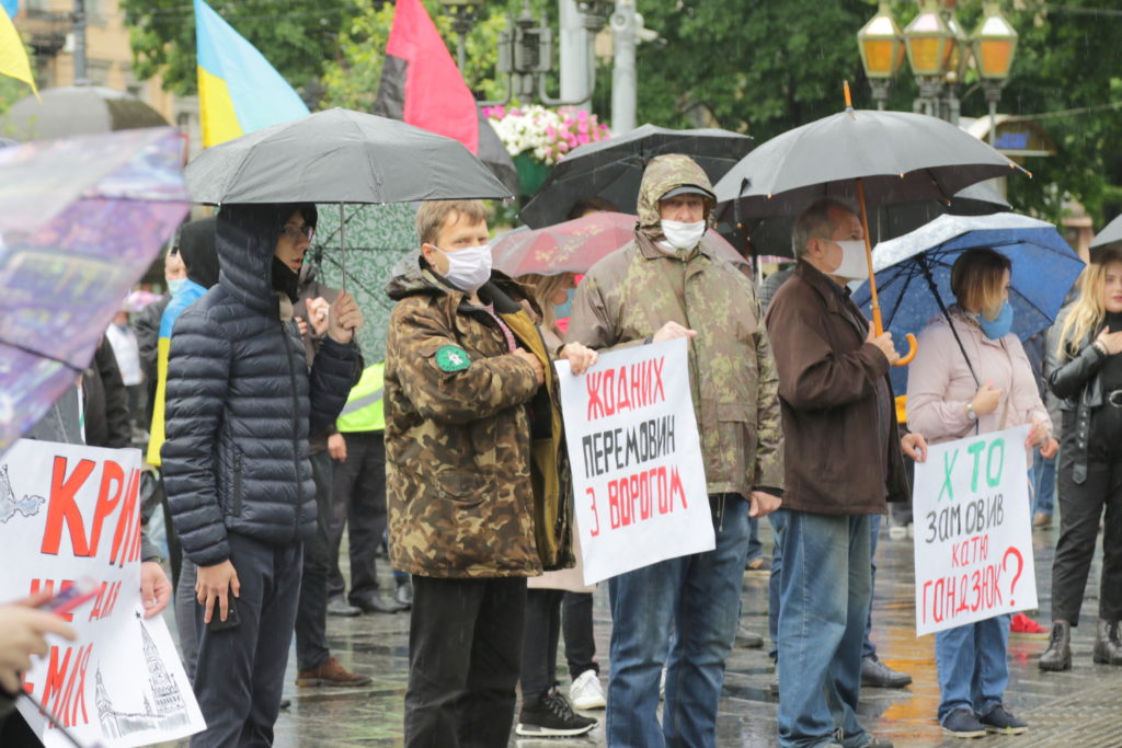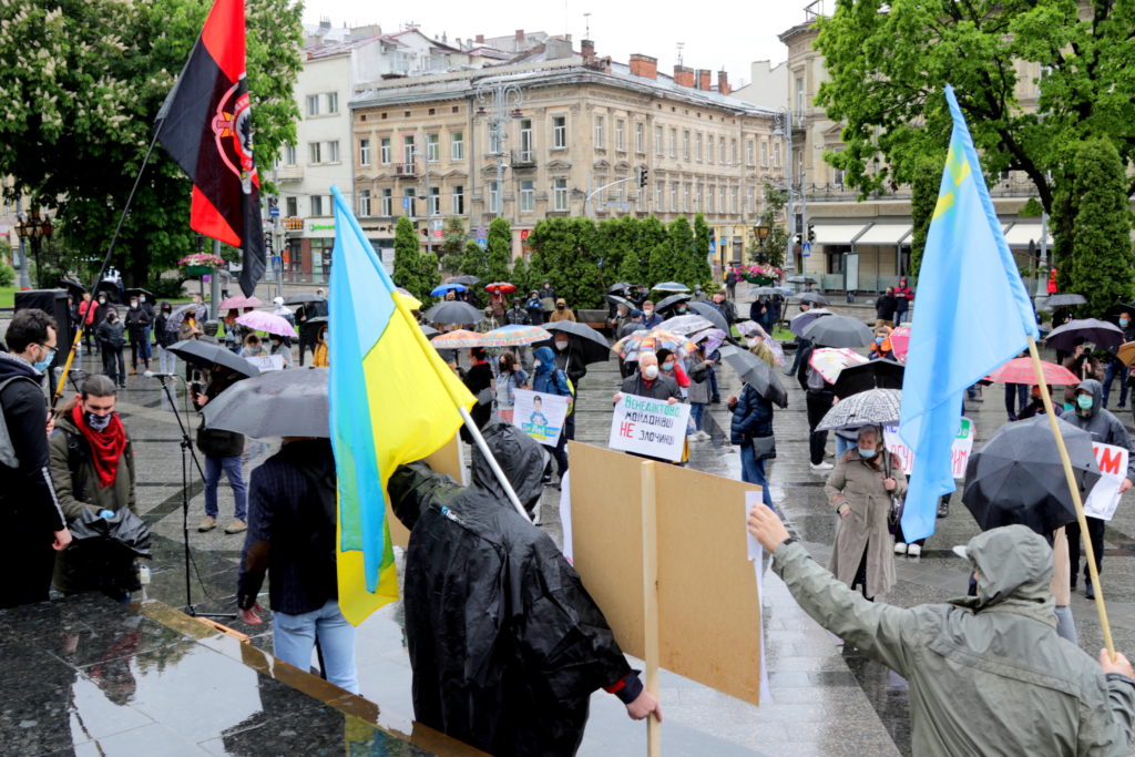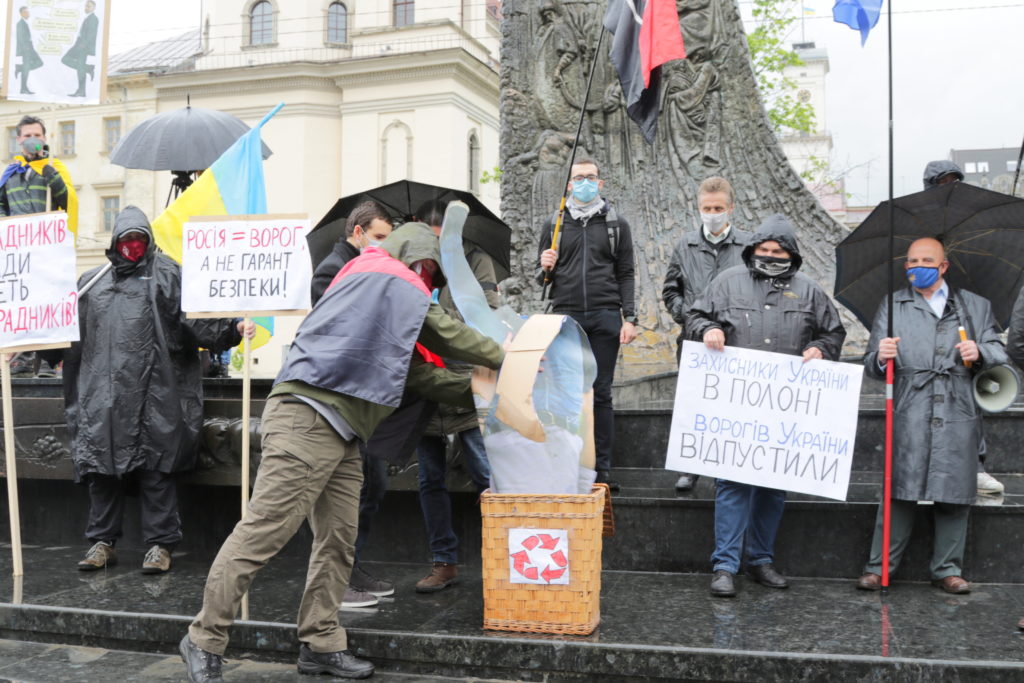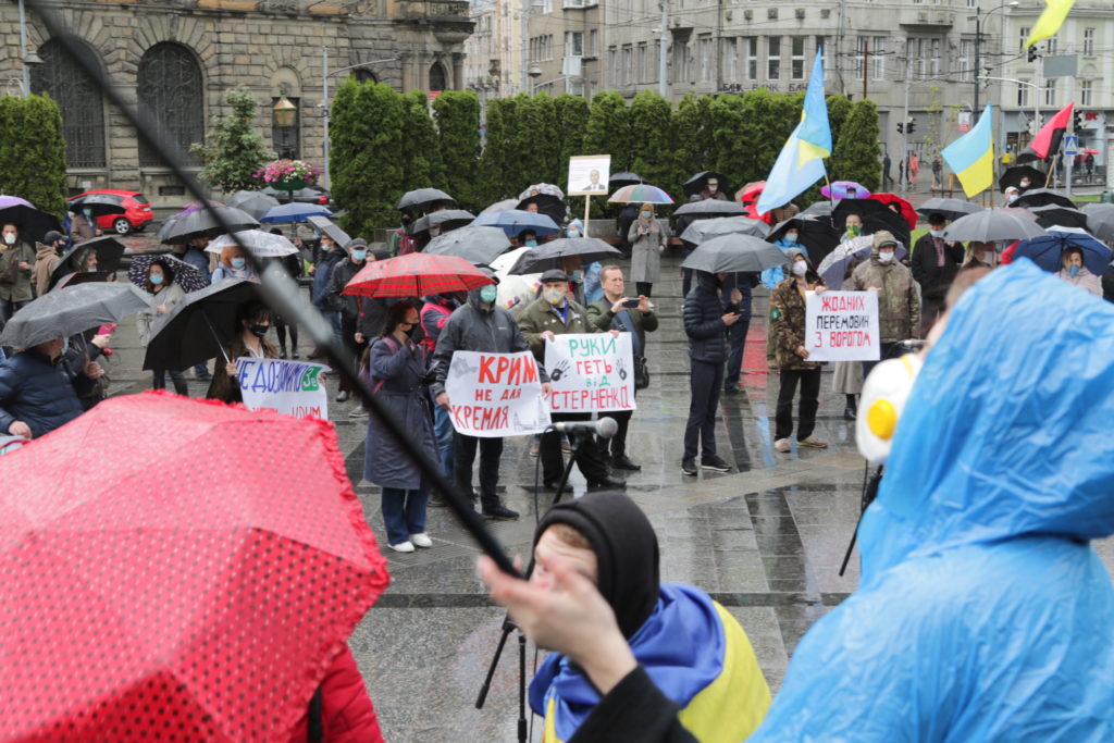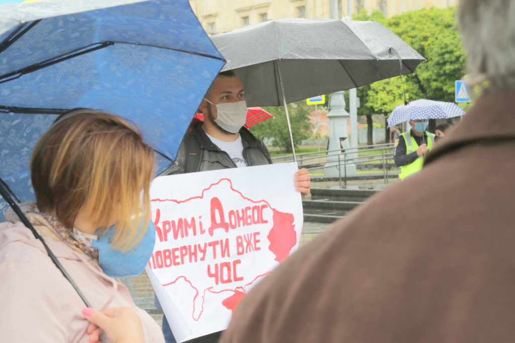 Попри дощову погоду до акції долучилось чимало львів’ян, які незадоволені новою владою та її компіментарними діями щодо нашого східного сусіда-агресора.