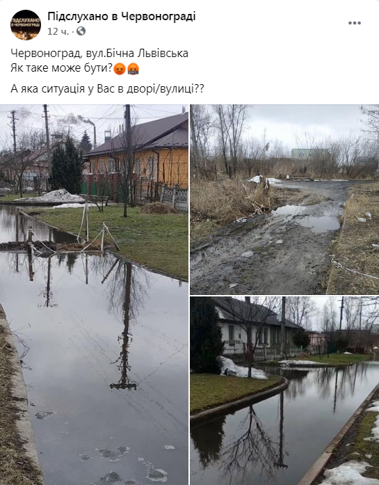 «Червоноград, вул.Бічна Львівська. Як таке може бути?», – зазначається у коментарі до світлин, які оприлюднені на сторінці спільноти «Підслухано в Червонорграді» у ФБ.