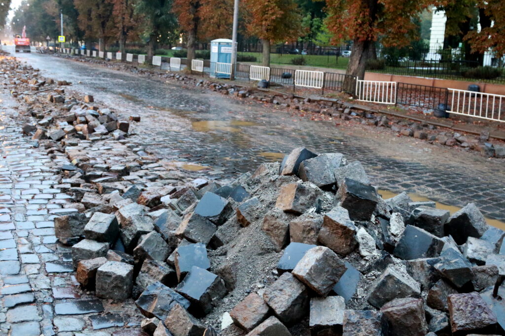 Позначки: бруківка, вулиця Бандери, ремонт, ремонт дороги