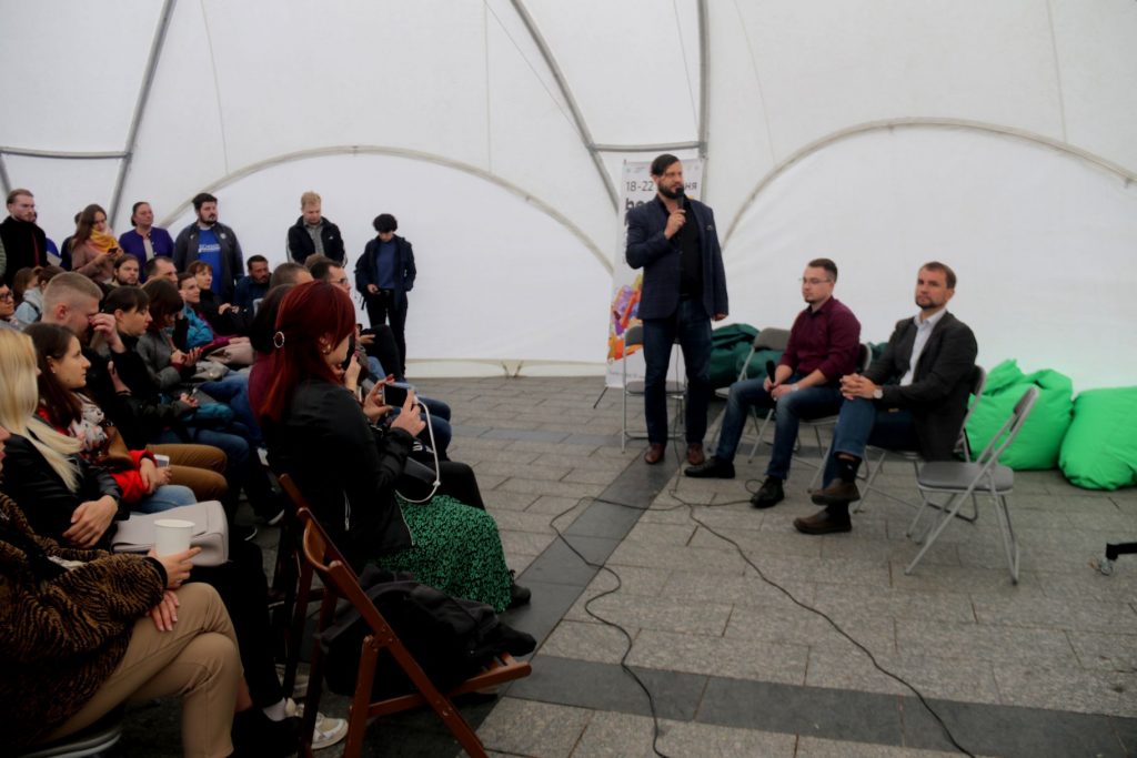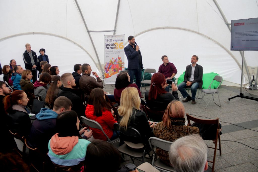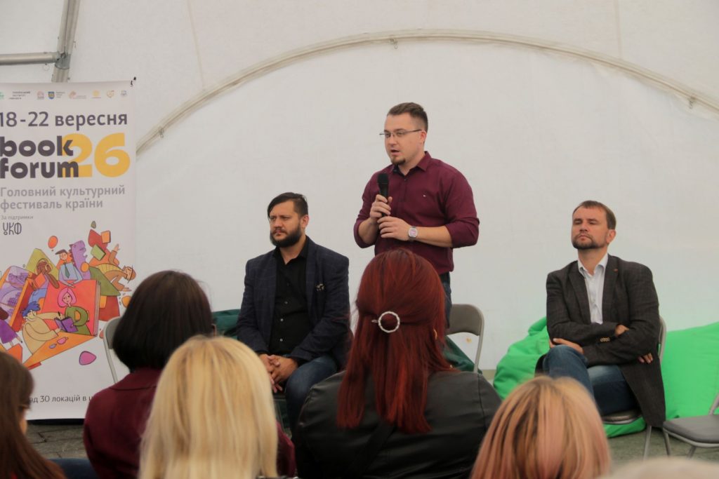 Сьогодні, 20 вересня, у Львові на площі біля Тараса Шевченка у межах 26 Book forum відбулась дискусія за участі В’ятровича Володимира, Віхрова Максима та Крапивенка Дмитра.