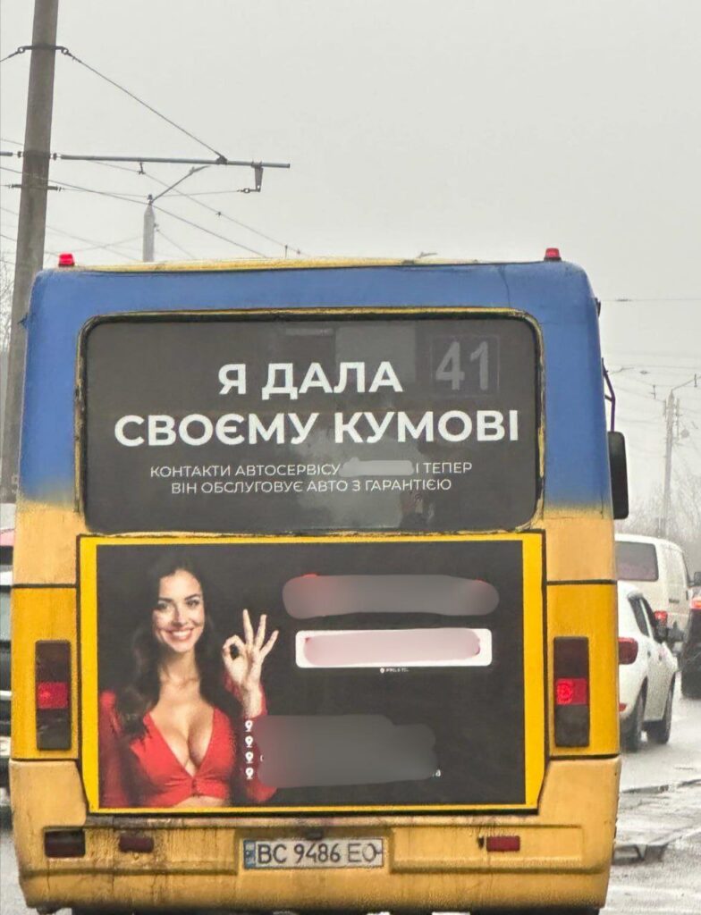 «Я дала своєму кумові»: реклама на львівських маршрутках.