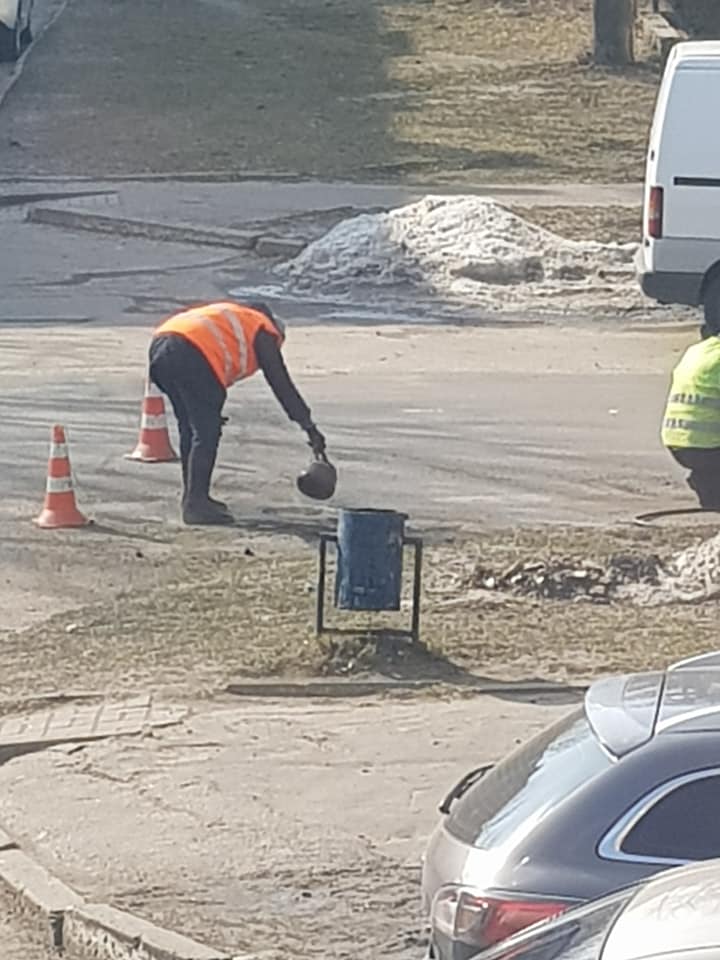 «Черговий ямковий ремонт дороги за новітніми технологіями (чайник наше все)», – зазначила автор світлин Людмила Квірінг.