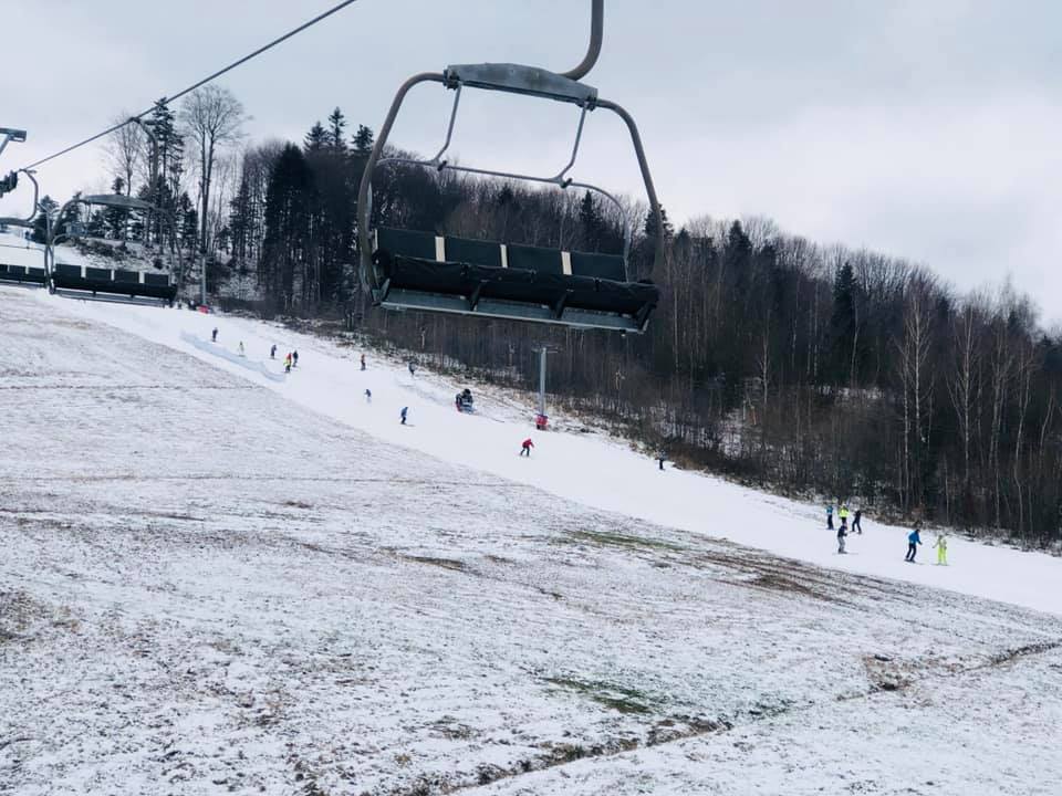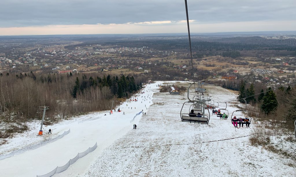 Через малосніжну погоду довелось рятуватись сніговими гарматами, але покрита лише одна траса. Лижники кажуть – снігу майже немає, фактично один лід.