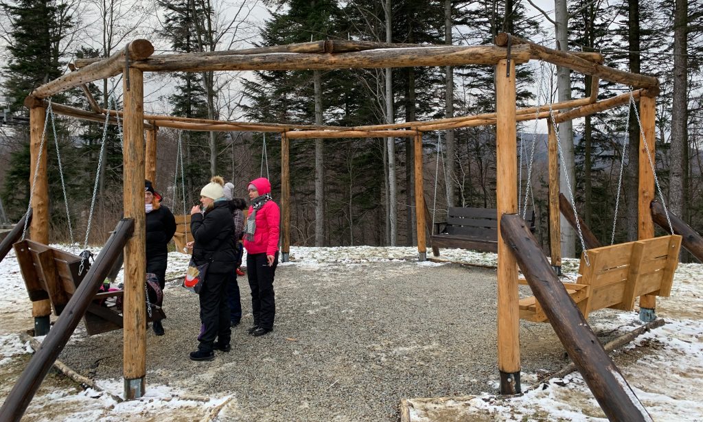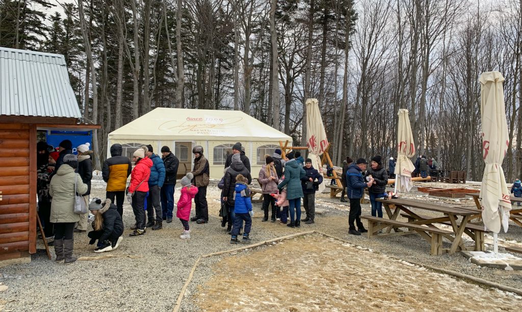 Працює 4-місний крісельний витяг на гору, проте підіймається дуже поволі. Зігрітися гарячим чаєм та перекусити можна на вершині гори та перед підйомом. Проте доведеться вистояти довго в черзі і змернути ще більше. У черзі за спорядженням на вулиці можна пробути і 2,5 год.