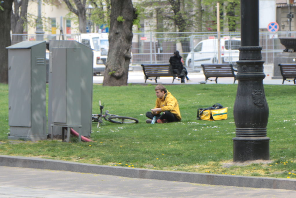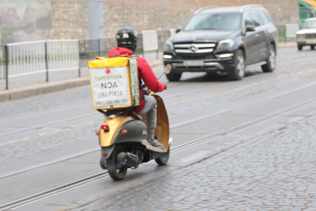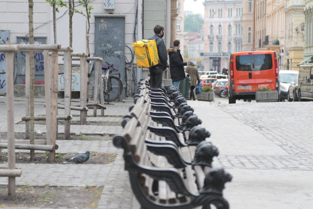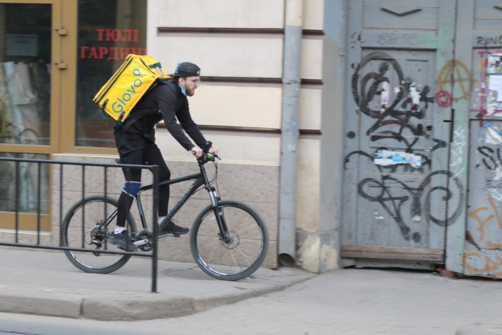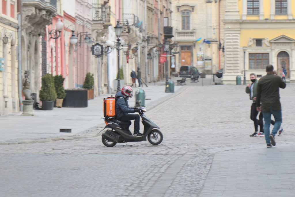 Як виглядають центральні вулиці міста, які буквально заполонили кур’єри на велосипедах, мопедах та на своїх двох, дивіться у фоторепортажі кореспондента 4studio.